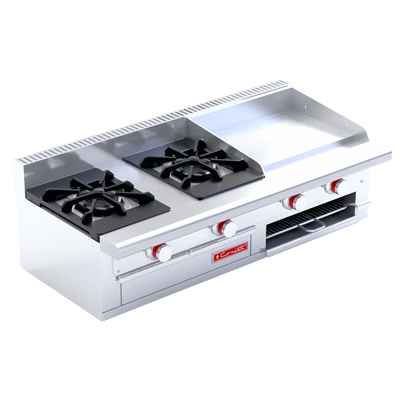 • 2 Quemador octagonal sólido en hierro fundido de 24,000 Btu/h c/u.