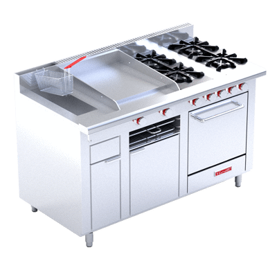 • 4 Quemadores octagonales sólidos en hierro fundido de 24,000 Btu/h c/u.