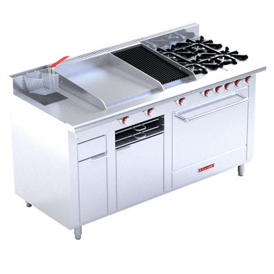 Estufa Coriat® Múltiple Piso Máster Freidora • 1 Tina A.Inox. 304 esquinas sanitarias, cap. 3 L, medidas interiores: frente: 0.204 m, fondo: 0.300 m, altura: 0.150 m. • 1 Canastilla niquelada con asa plastificada, medidas interiores: frente: 0.160 m, fondo: 0.250 m, altura: 0.110 m. • 1 Quemador tub